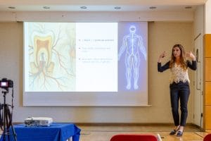 Joana Vasconcelos: É preciso falarmos, disseminarmos e apresentarmos, cada vez mais, estas relações em congressos, é preciso que um congresso de medicina tenha médicos dentistas a falar e vice-versa, como aconteceu recentemente no congresso da Ordem dos Médicos Dentistas – a Ordem está a abrir muito para isto e chamou profissionais da saúde integrativa para falarem sobre saúde integrativa e também, para perceber o papel que nós, médicos dentistas podemos ter na regulação sistémica, através da boca. Eu acho que isto eleva a profissão dos outros, se nós conseguirmos fazer esta articulação, se permitirmos eventos como este, onde profissionais das várias áreas partilham conhecimentos.