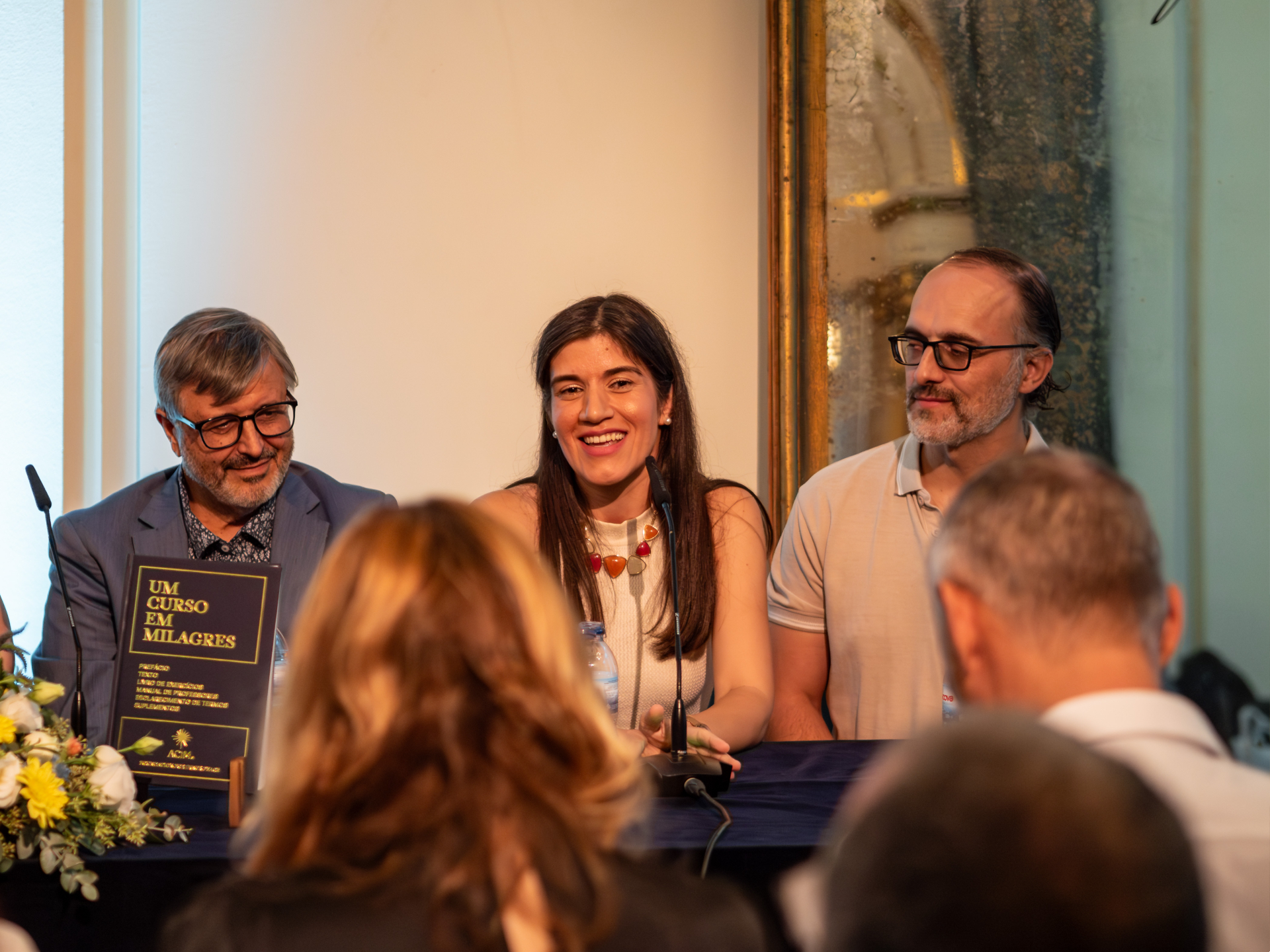 Christina Loureiro: Há pessoas que compram o livro e ele fica na estante a aguardar uma motivação, uma inspiração para o ler, porque a linguagem dele é profunda, não é um tipo de leitura que se faça para descomprimir um bocadinho. É um estudo que vai trabalhar ao nível da mente, do inconsciente – o leitor tem de se preparar para algo muito profundo. Então, há pessoas que o usam como oráculo: de vez em abrem-no, leem uma página e sentem-se inspiradas. Há outras que começam pelo livro de exercícios porque tem uma linguagem um pouco mais fácil e prático. Há outras, como nós, para quem este é um livro de referência, é a nossa bóia de salvação.